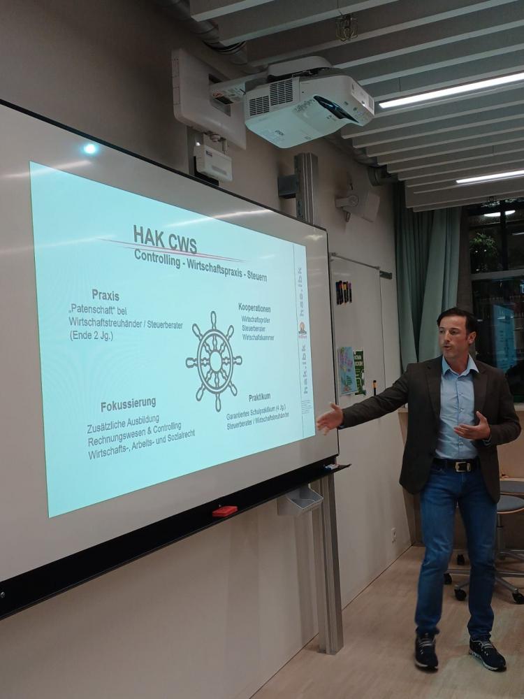 Auch beim Elternabend der 4. Klassen drehte sich alles um die Zukunft nach der Mittelschule: Verschiedene weiterführende Schulen stellten sich vor und boten Einblicke in ihre Ausbildungsangebote. Eltern und Schüler:innen hatten dabei die Gelegenheit, sich über die LLA Imst, die Ferrarischule Innsbruck, die HAK Innsbruck, die HTL Fulpmes, das KORG, die Tourismusschule Zillertal sowie die Polytechnische Schule Neustift zu informieren.